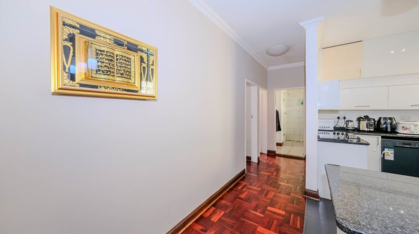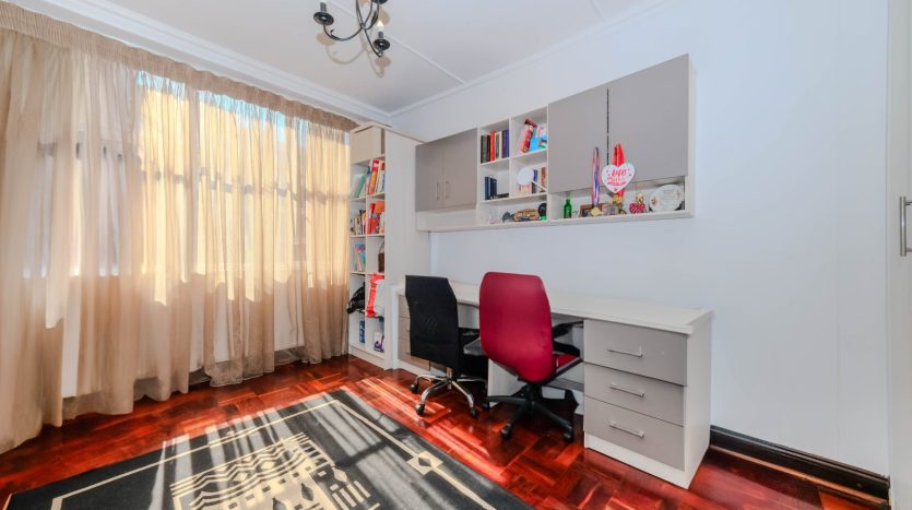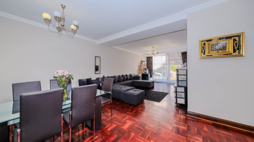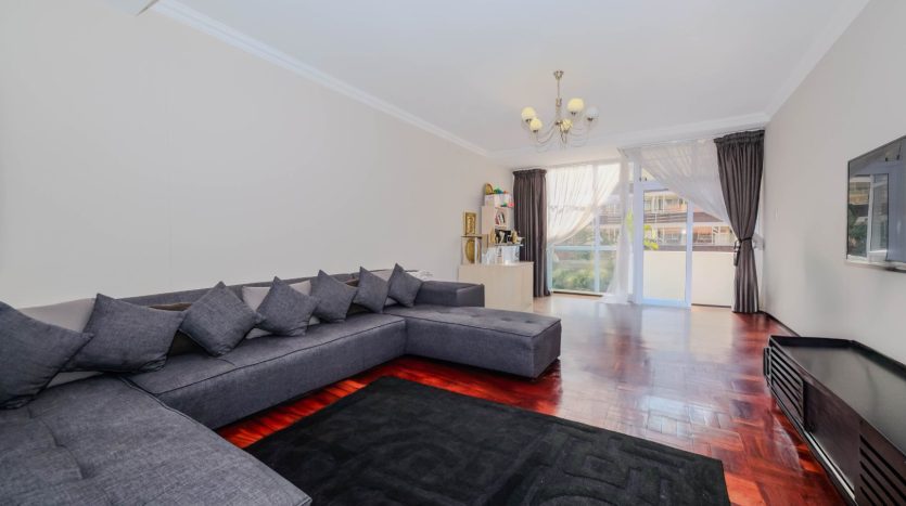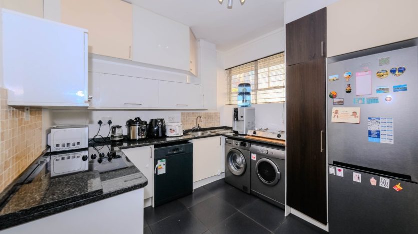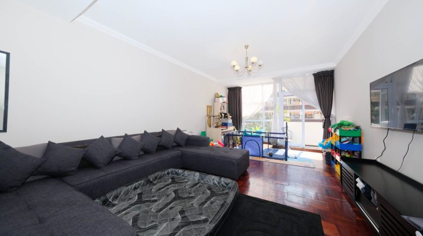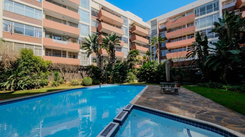 Renovated North Facing! lock-up-and-go 2nd floor apartment. No need to spend a cent just move in! . Two bedrooms with built in cupboard and parquet floors thru out the apartment. One full bathroom with double basin and tiled. Entrance, Open plan Modern kitchen with built in cupboards, space for appliances tiled and granite tops. Spacious dining room lounge leading to an open balcony with the view of the sparkling communal pool and garden. One staff quarter, and two basement parking bays. 24Hours top notch security. Close to all amenities including the Gaubus/Train route. Opposite the evergreen Killarney Park. Walk to the mall. Ideal for health workers, students, family, couples and young entrepreneurs. So please come and put your signature on this warm welcoming home. Going! Going! Gone to the 1st caller to view this splendid apartment Urgent Sale!!